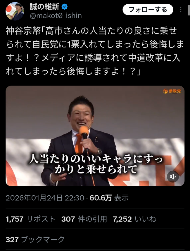 【悲報】参政党、高市応援から高市叩き路線に切り替えるも再び炎上