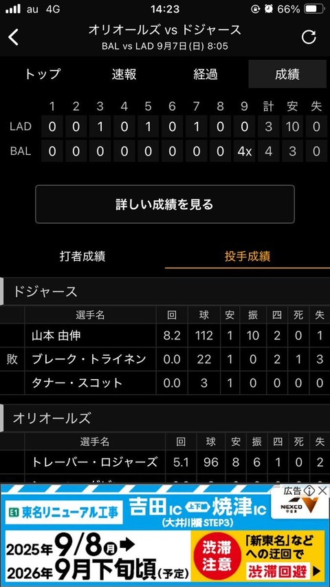 ドジャースが悲劇のサヨナラ負け スコットがサヨナラグランドスラム被弾の悪夢 また山本由伸の好投が報われず…