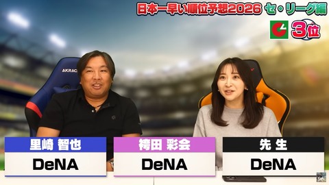 セリーグ順位予想2026、DeNAは里崎チャンネル:3位・西尾典文氏:4位
