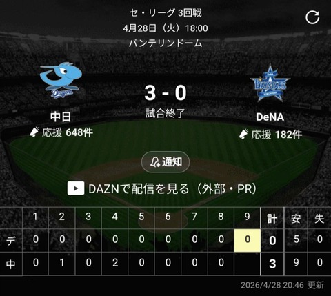 【絶望】DeNA、延長11回に悪夢の自滅で最下位タイ転落…三森の痛恨エラーにファン憤死