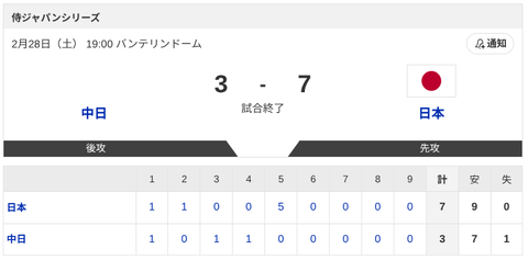 【中日vs.侍ジャパン】3-7で侍ジャパン!