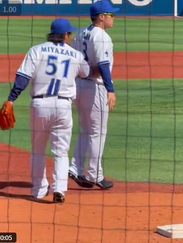 【尊い】宮崎敏郎、ルーキー小田に三塁守備を熱血指導wwwまさに「生ける教科書」やな