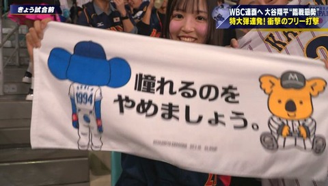 【画像】ドアラさん、大谷の名言を悪用www「コアラに憧れるのをやめましょう」タオルがシュールすぎる