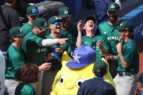 【画像】DeNAチャピー、豪州代表から大爆笑をかっさらうwwwハマスタの天使が世界に見つかるwww