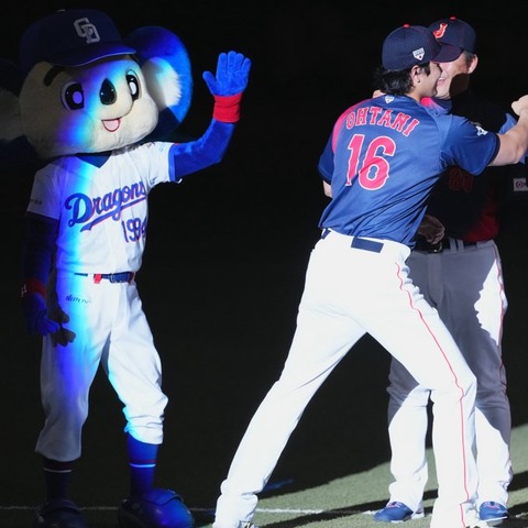 【悲報】ドアラ、大谷翔平にハイタッチを華麗にスルーされるwwwボッチ姿が切なすぎて草