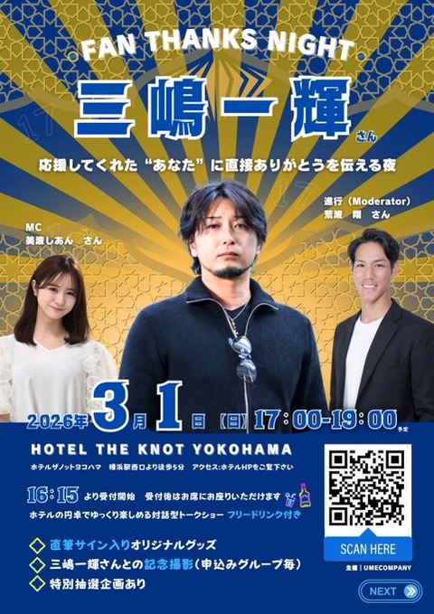 【横浜】三嶋一輝ファンイベント、本日開催きたあああ!荒波翔も参戦で実質ベイスターズ同窓会www