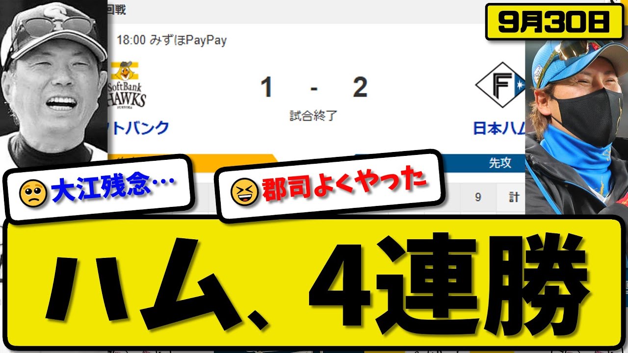【パ1位vs2位】日本ハムファイターズがソフトバンクホークスに2-1で勝利…9月30日4連勝…先発福島3回無失点…郡司が決勝ホームランの活躍【最新・反応集・なんJ・2ch】プロ野球