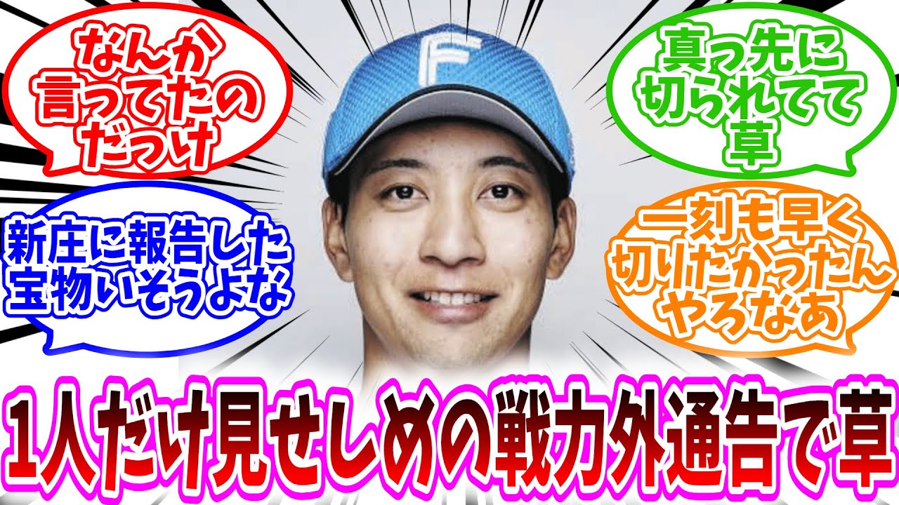 【日本ハムファイターズ反応集】「1人だけ見せしめの戦力外通告で草」に対する、野球民の反応集/なんか言ってたのだっけ/真っ先に切られてて草/新庄に報告した宝物いそうよな/一刻も早く切りたかったんやろなあ